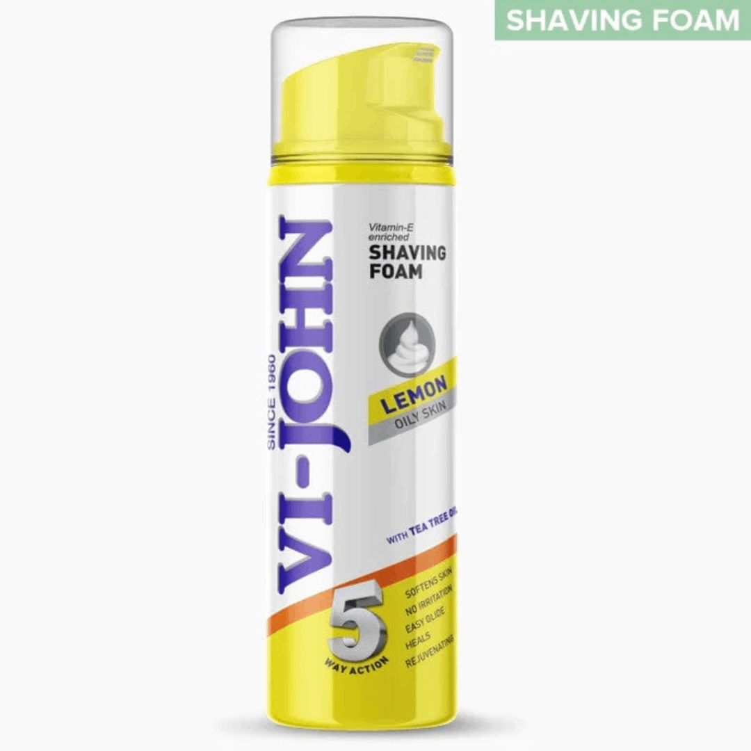 VI-JOHN Shaving Foam Lemon for Oily Skin contains lemon oil with antioxidant and antibacterial properties. It benefits oily skin, softens tough beards, and delivers a close shave. It helps to give you a smooth and clean shave with natural antiseptic protection.